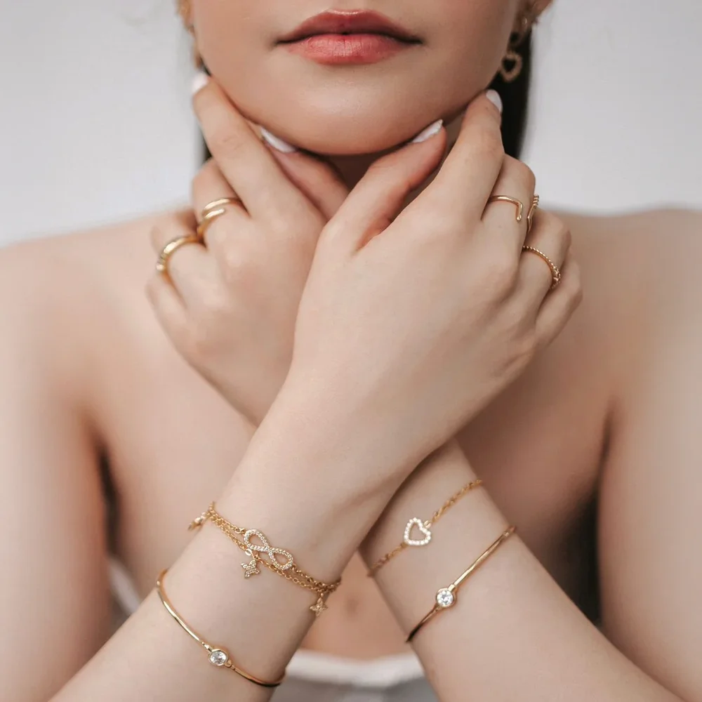 Evite dormir, tomar banho ou praticar atividades físicas com a peça para preservar o banho de ouro e o brilho por muito mais tempo.